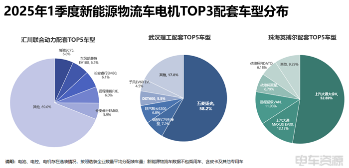 一季度新能源物流车市场,电机配套量受上汽通用五菱、北汽福田等几家主机厂销量增长影响,整体格局发生以下几点变化。
