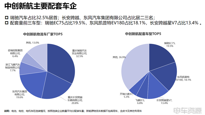 宁德时代的配套企业和车型表现出鲜明的特征,配套量TOP5车企中有4家主打卡系车,准确地说是轻卡车型销量大户;同时,配套量TOP5车型中也同样如此。