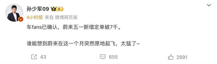不过,这份销量数据并不能完全反映蔚来的市场表现。知名汽车博主孙少军爆料,五一假期期间,蔚来新增订单突破7000辆,交出了一份亮眼的假期成绩单。这份成绩的取得,与蔚来推出的一系列极具吸引力的营销举措密不可分。