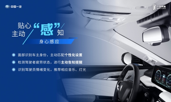 其次,奔腾E01把座舱人机互动的维度,从被动接受指令,上升到主动探知用户需求。搭载的身心感应识别系统,可以通过面部识别车主身份,主动匹配个性化设置;检测驾驶者疲劳状态,进行主动告知提醒;识别驾驶员喜悦、悲伤、愤怒等情绪变化,推荐配置相应的音乐、气味儿和灯光。