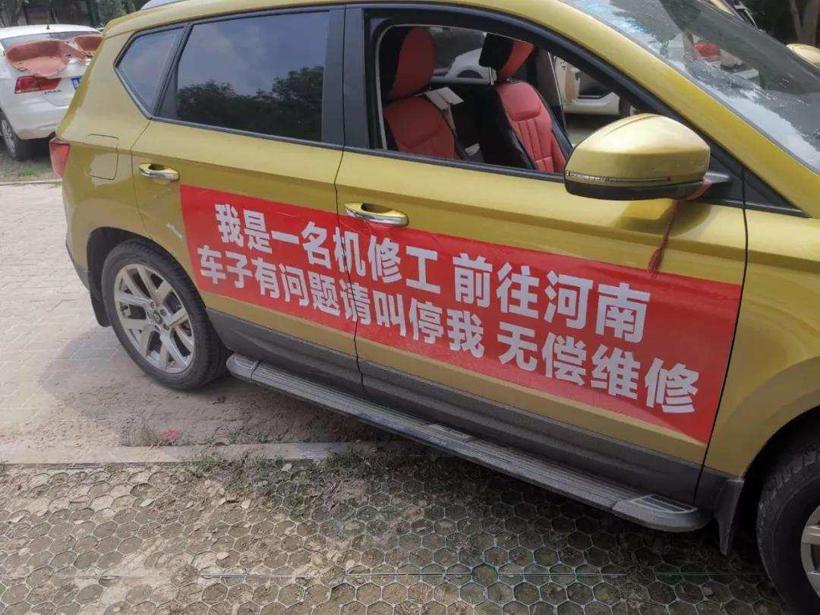 其中一位志愿者杨平透露,刚到郑州的时候,团队无车可修。大家不相信有人愿意免费修车,只有少数几个车主愿意让他们查看车况。