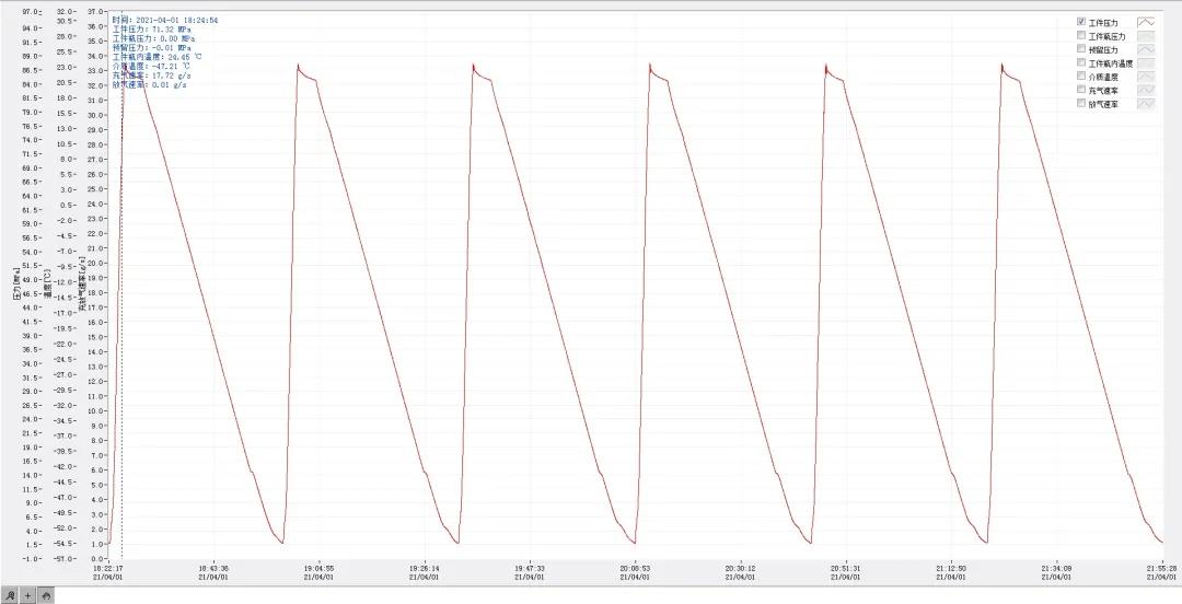 据了解,此次储氢气瓶的型式试验,按照GB/T 35544-2017《使用性能试验》中《常温和极限温度气压循环试验》标准进行测试。